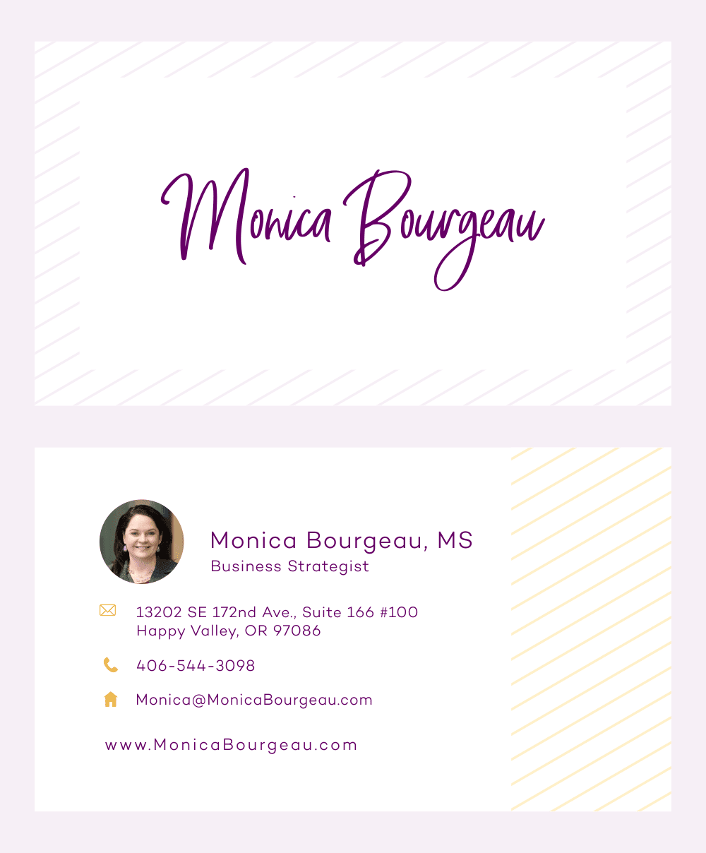 Ten en cuenta: Este servicio es para un diseño de tarjeta de presentación y no para un diseño de logo. ¿Quieres desarrollar una marca para tu negocio? ¿Necesitas un logotipo personalizado para usarlo en todos tus materiales de marketing? Ofrezco servicios de diseño aquí.
